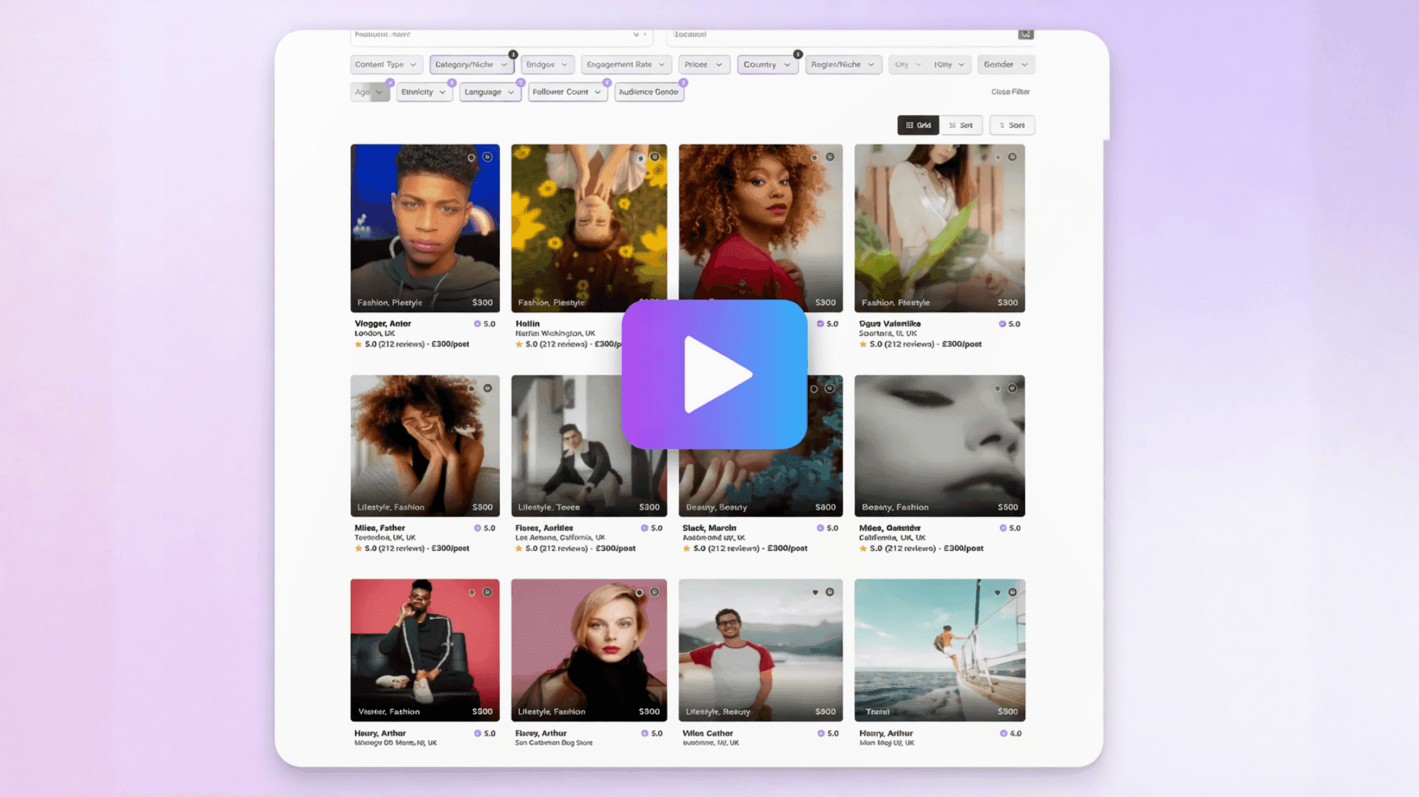 Browse creator profiles